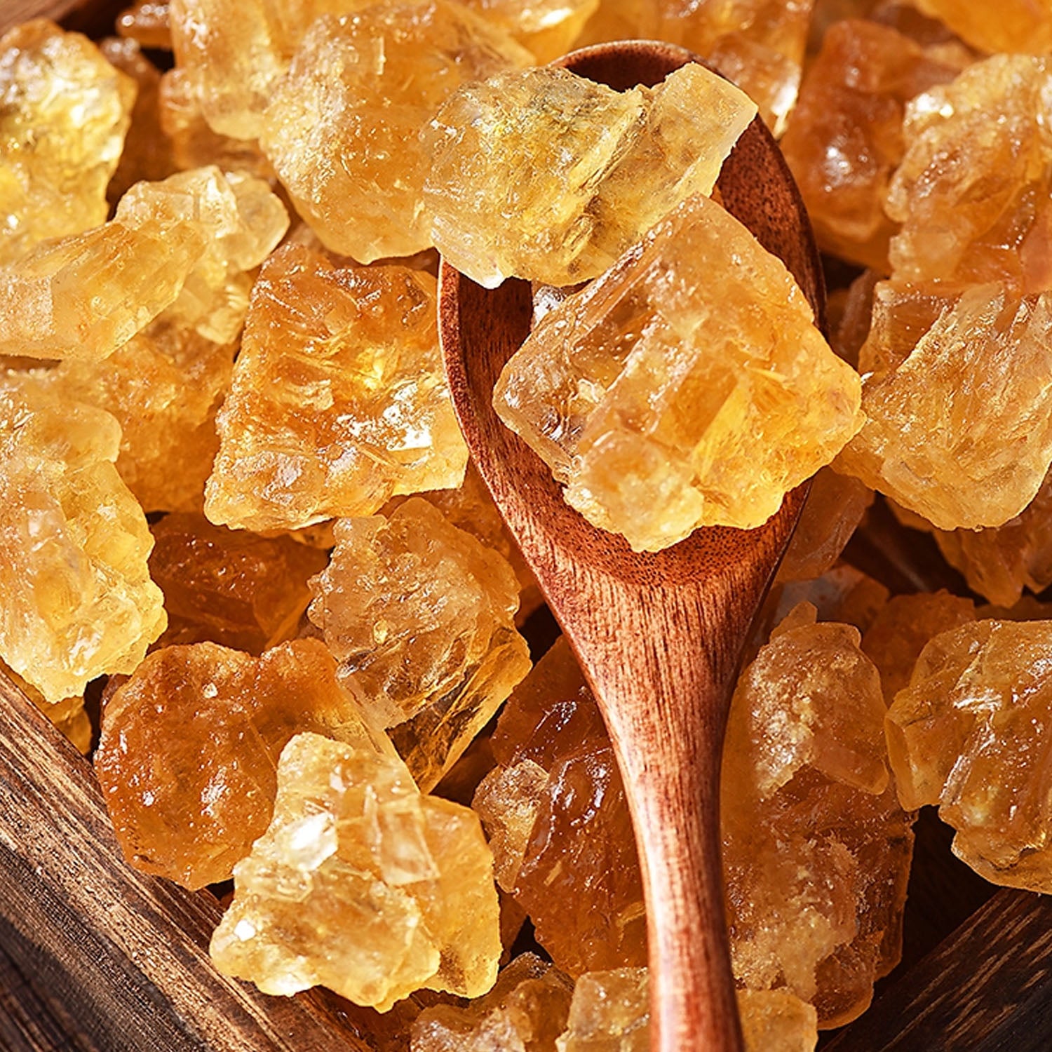 It differs from white rock sugar in its golden color and slightly deeper, more caramelized flavor. This variant is obtained through a slight caramelization process, which gives it its characteristic tone and unique flavor.